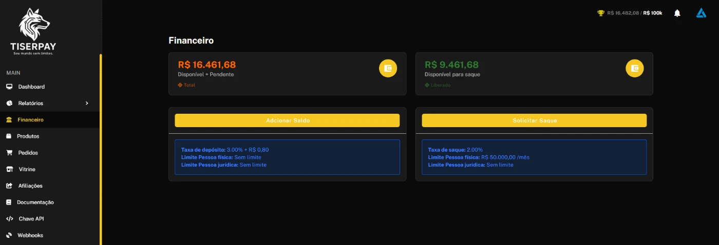 Receba via PIX (QR Code Copy & Paste), Boleto e Cartão de Crédito. Retorno automático via Webhooks. Split de pagamentos configurável. - Cash-Out (Saques):