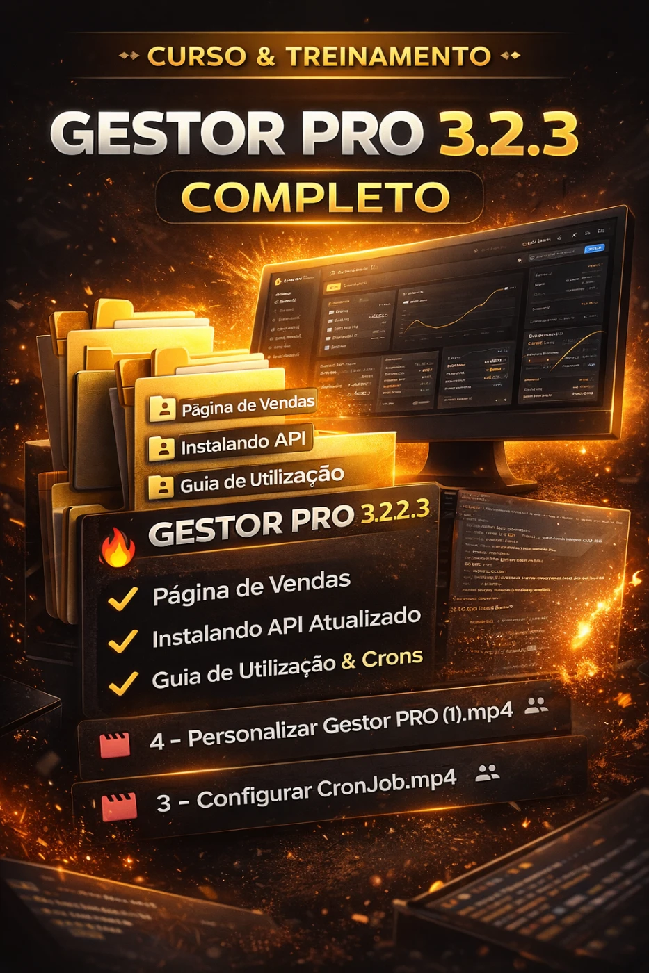 O Gestor PRO 3.2.3 Completo é um treinamento avançado e totalmente prático, criado para quem quer dominar a gestão, automação e configuração profissional de sistemas, do zero ao nível avançado, com foco em performance, organização e escala.
