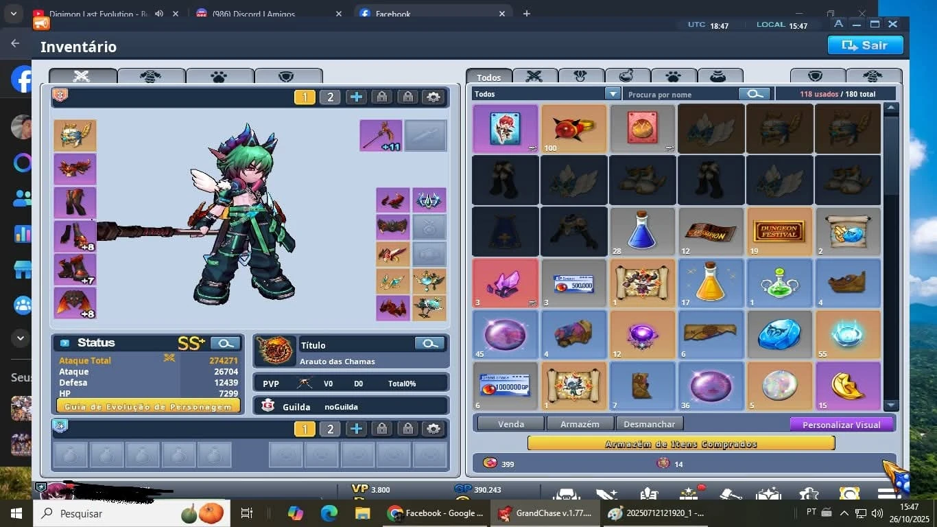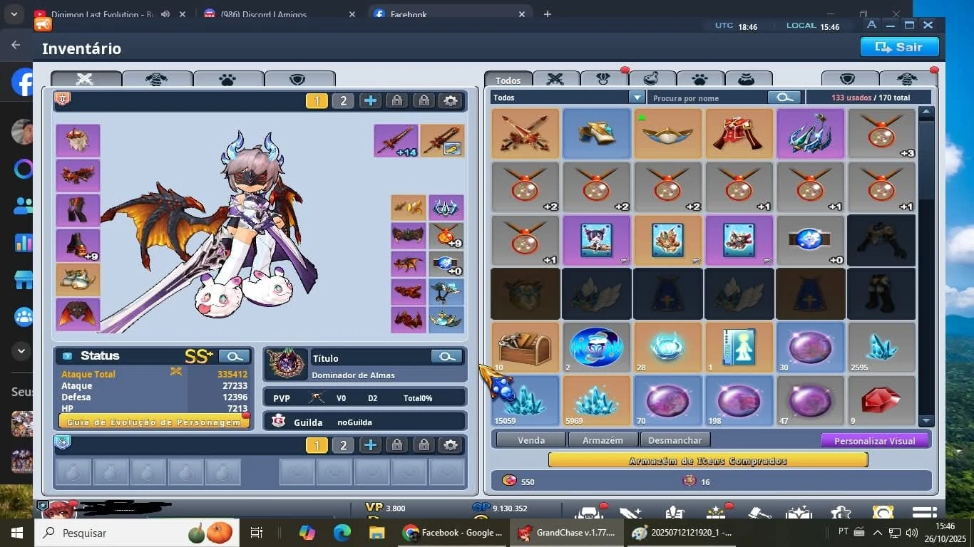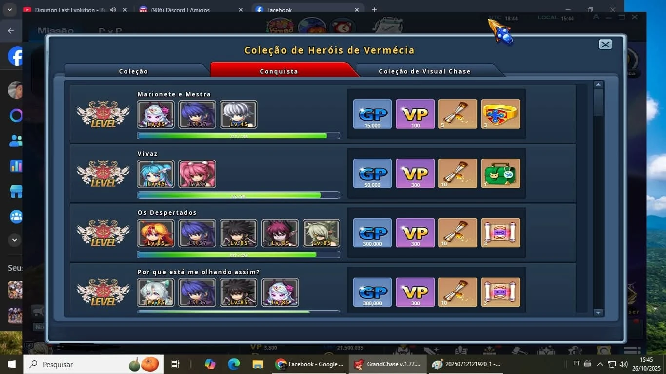 Conta grand Chase com 17 chars LV 85 , 6 despertar, main 800k e muitos recursos pra garantir o end game.