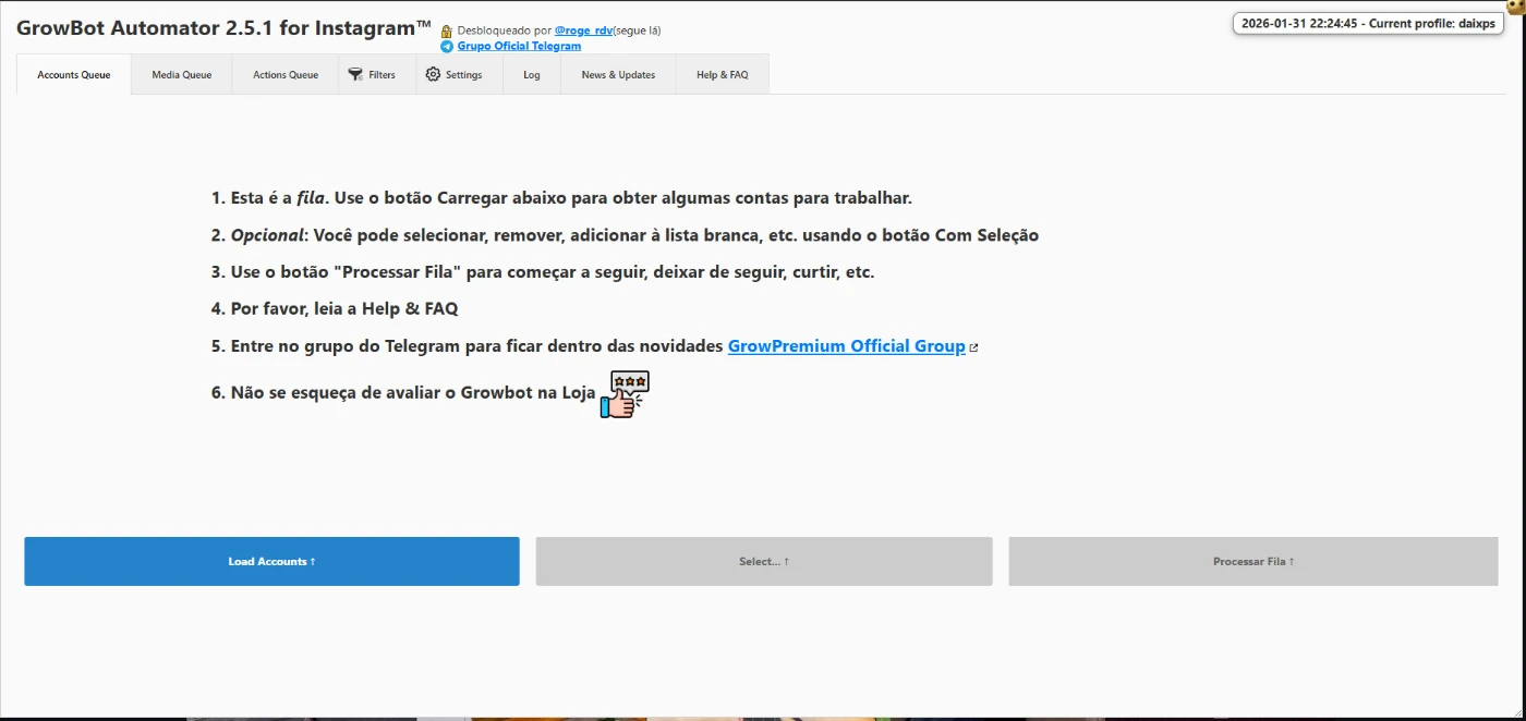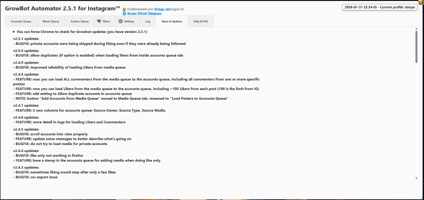 🚀 GrowBot Automator para Instagram™ - Versão 2.5.1 (2026)