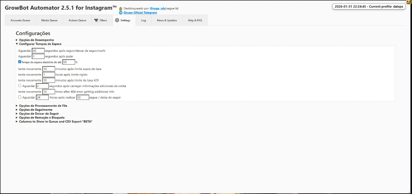 GrowBot v2.5.1 - Automador Instagram Profissional (Anti-Ban)