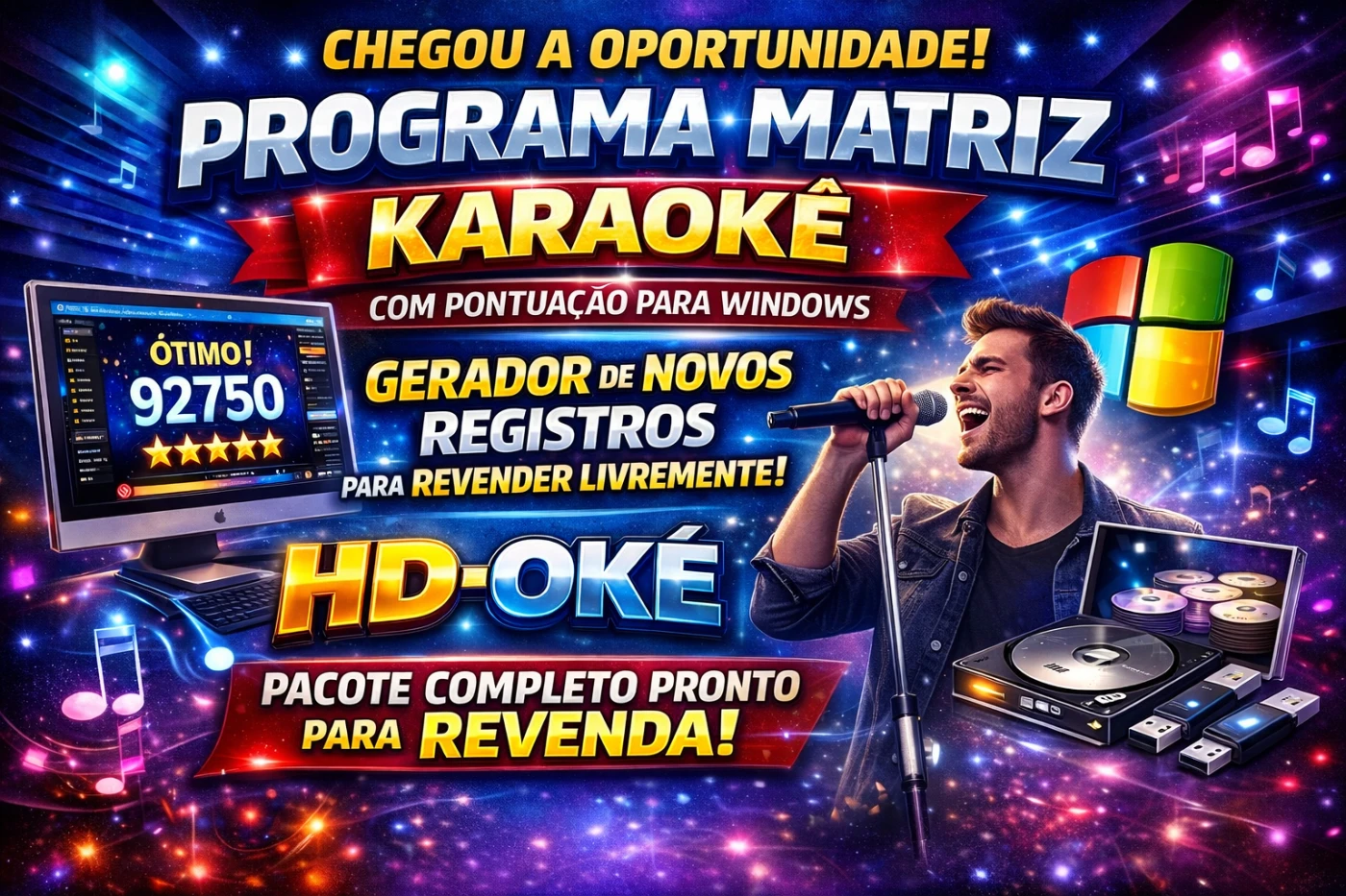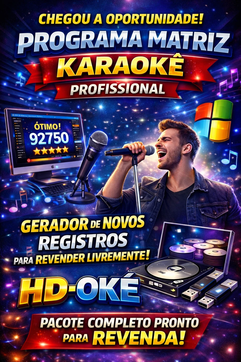 Apresentamos o PROGRAMA MATRIZ DE KARAOKÊ PROFISSIONAL, a solução definitiva para quem deseja lucrar com karaokê de forma inteligente e escalável.