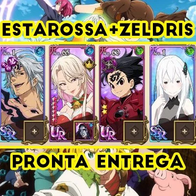 Venda da conta com personagens de festivais, Estarossa e Zeldris, excelentes para montar aquele time de demônios meta atualmente.