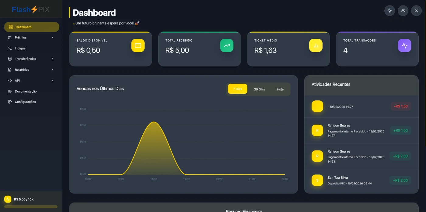pagamentos digitais via PIX, desenvolvido com tecnologias modernas e