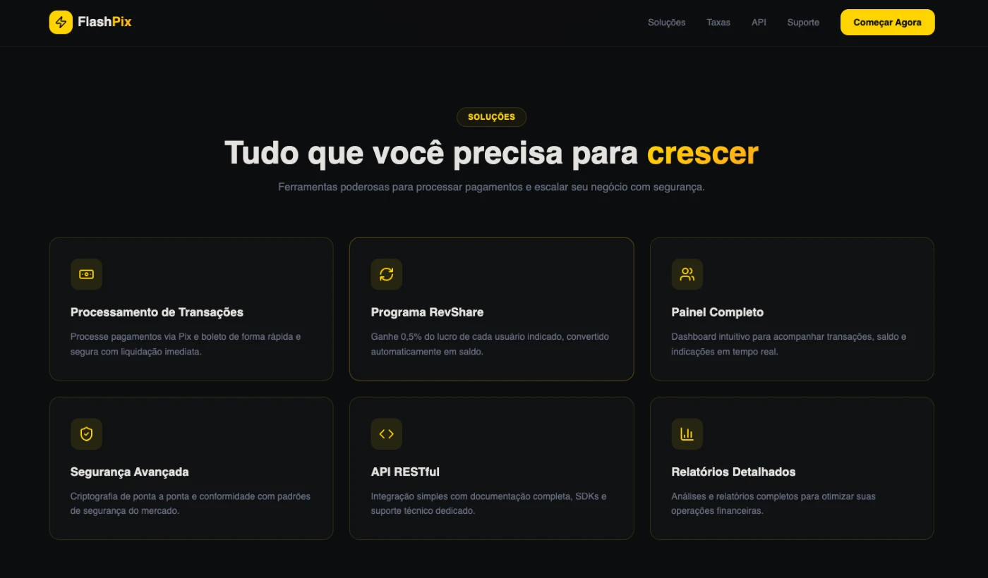 ✅ Integração nativa com gateway PIX (VulcanerPay/PixUp/BSPay)