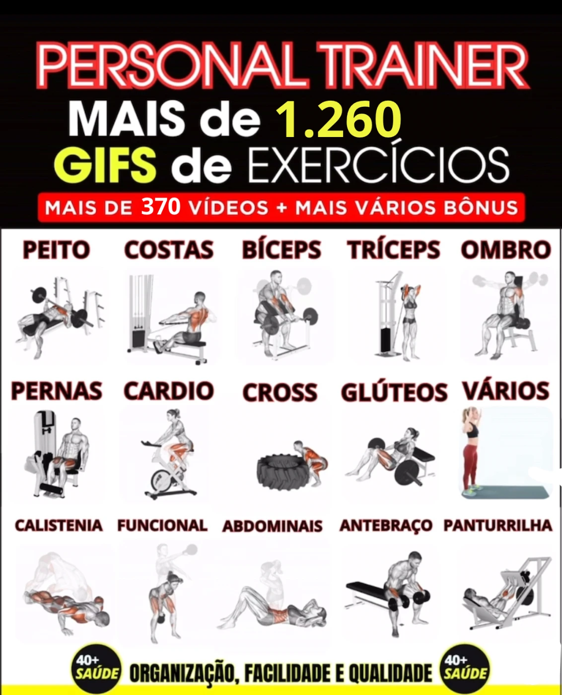 PACOTE EXCLUSIVO DE MAIS DE 1.200 GIFS E VIDEOS DE EXERCICIOS FISICOS, VOCE TERA UMA BIBLIOTECA COMPLETA DE DIVERSOS EXERCICIOS DE MUSCULACAO, FUNCIONAL,CROSS, YOGA E MUITO MAIS!