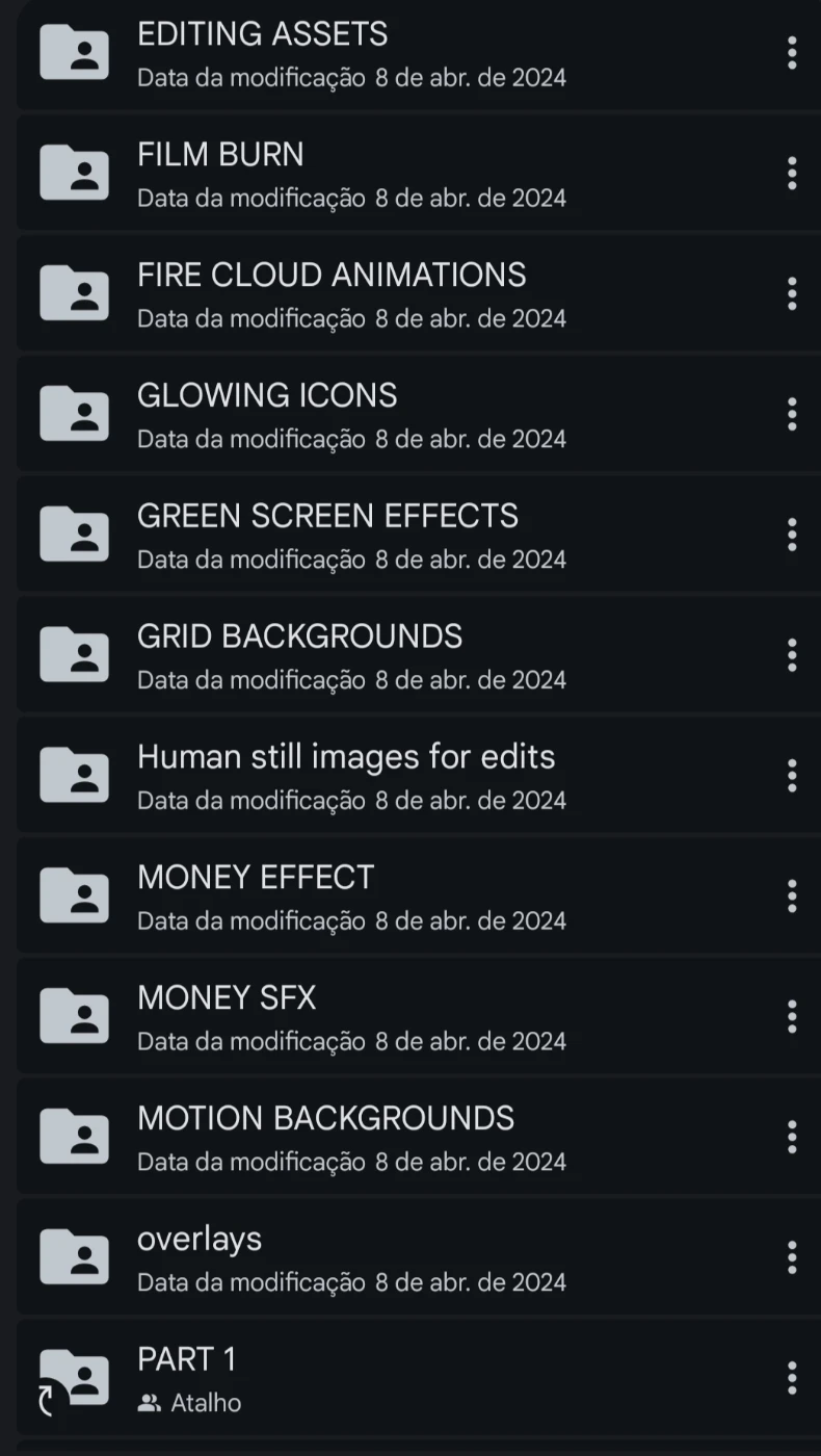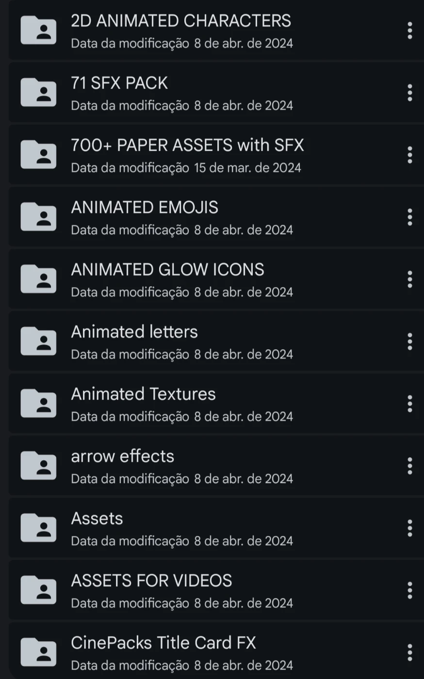 O núcleo do produto é o 100GB EDITING PACK, uma biblioteca monstruosa dividida em 30 partes modulares para facilitar o seu download. Você baixa apenas o que precisa, quando precisar.