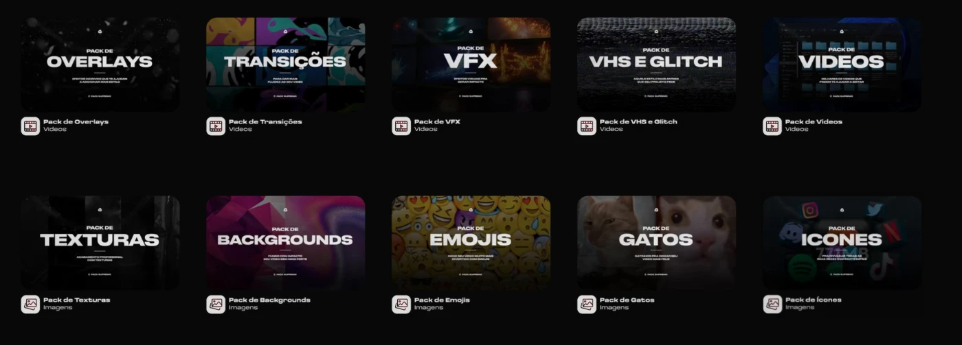 Overlays, Transições premium e efeitos de VFX.