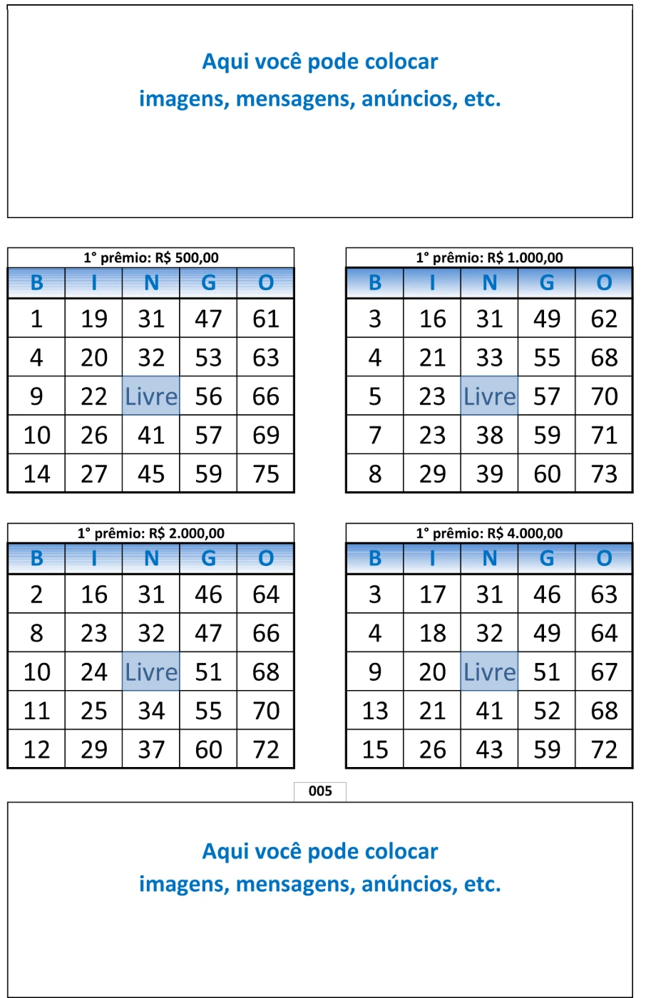 01 - Você pode utilizar em sua empresa. Pode reunir os amigos e familiares para se divertirem. Hoje os [conteúdo removido] s para bingo podem ser adquiridos por um custo muito baixo. O que falta são somente as cartelas do jeito que você precisa e com estas você pode gerá-las a qualquer hora e quantidade que desejar e ainda pode escolher dentre vários tipos de acordo com sua necessidade.
