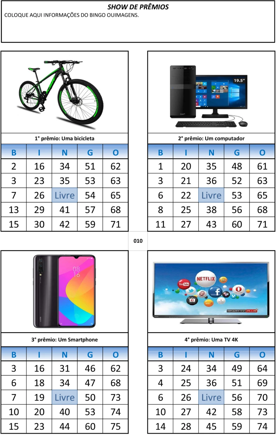 05 - Em algumas opções de cartelas você pode colocar imagens aleatórias ou até imagens dos produtos (prêmios).