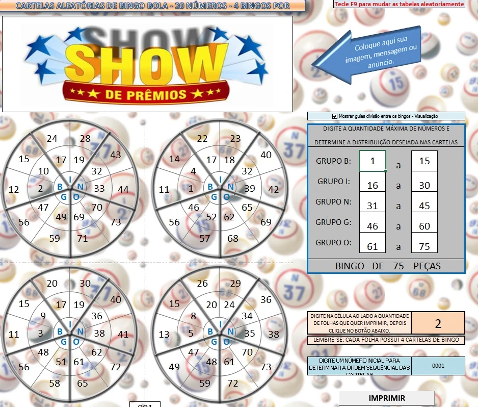 planilhas excel exclusivas para gerar cartelas de bingo.