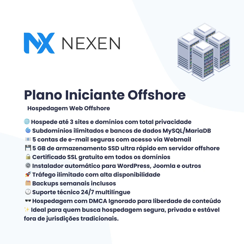 Nosso Plano Iniciante Offshore oferece desempenho, segurança e anonimato, ideal para quem precisa de estabilidade fora do Brasil.