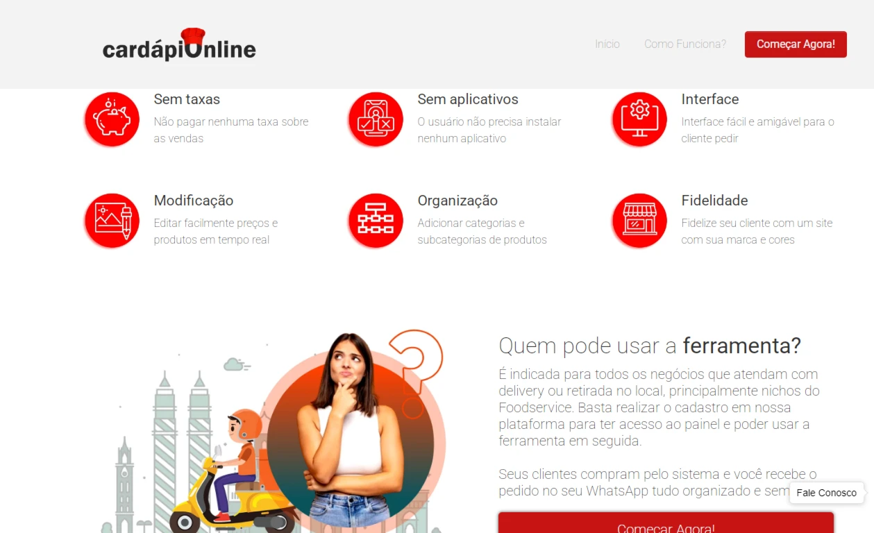 Desenvolvido para negócios que possuem uma pequena estrutura capaz de receber as informações em um microcomputador desktop e que prezam pela agilidade na hora de receber seus pedidos. Os pedidos chegam montados direto no painel administrativo e também no seu [conteúdo removido] App. Não tem mensalidade, você instala o sistema em seu próprio servidor e utiliza o sistema de forma ilimitada.