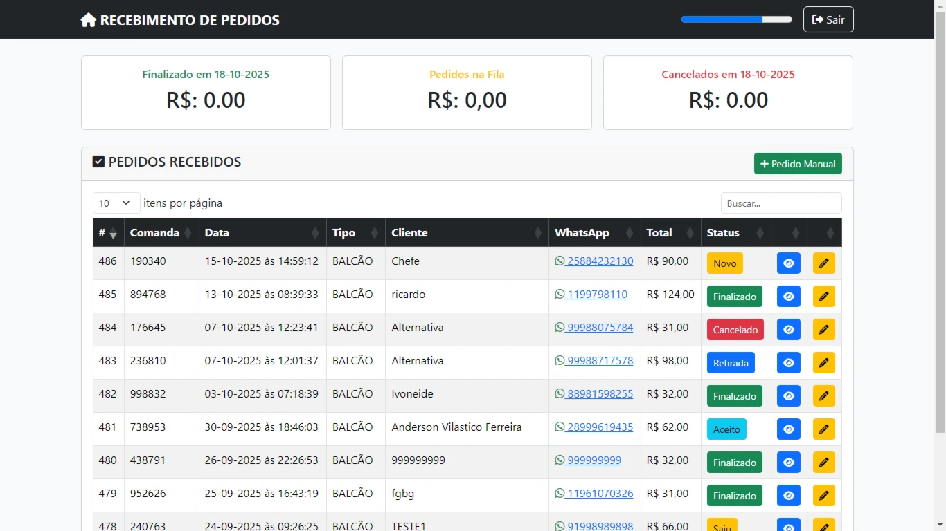 - Acompanhamento dos Pedidos feitos pela Mesa