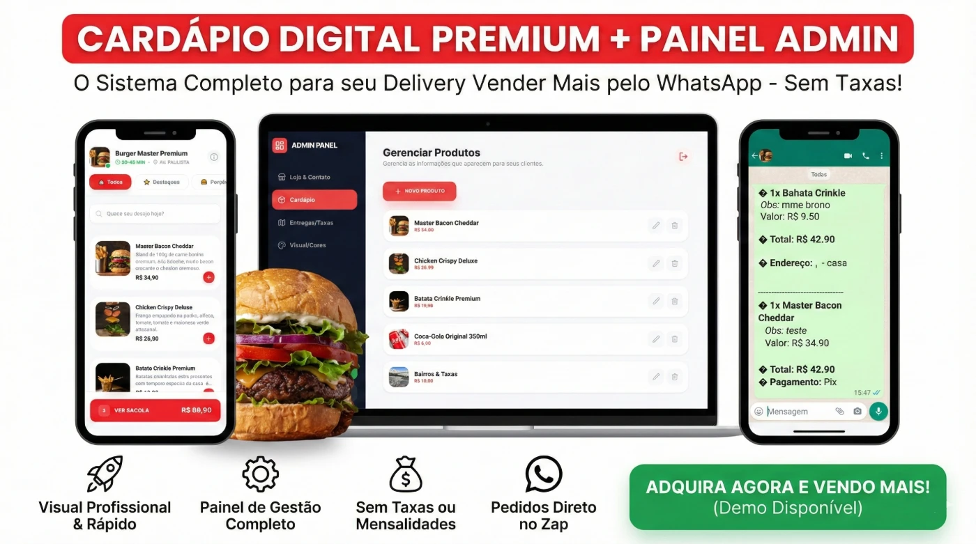 Você não está vendo mais um "scriptzinho" básico. Você está diante da Solução Definitiva para Deliveries que querem se livrar das taxas de aplicativos.
