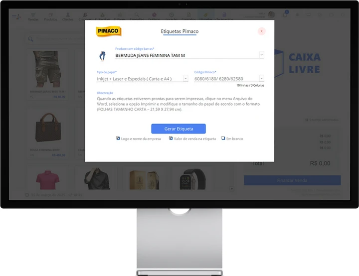 - Escolha gerar etiqueta com ou sem valor de venda e logomarca