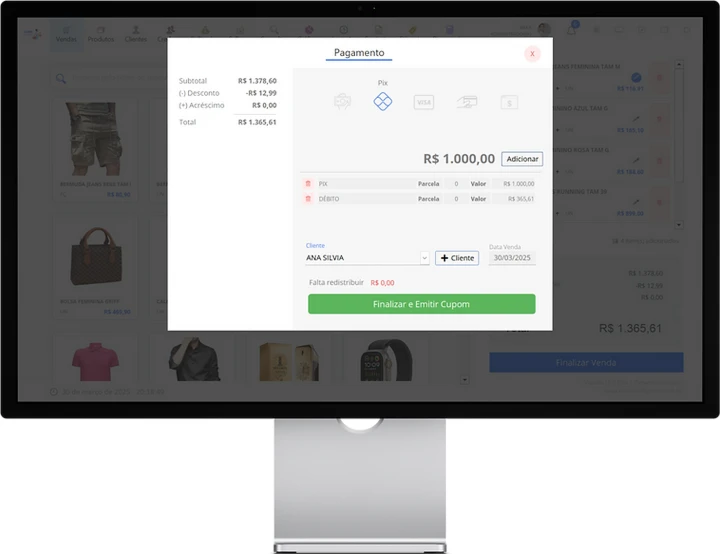 - Venda via PIX, Dinheiro, Débito, Crédito e outras