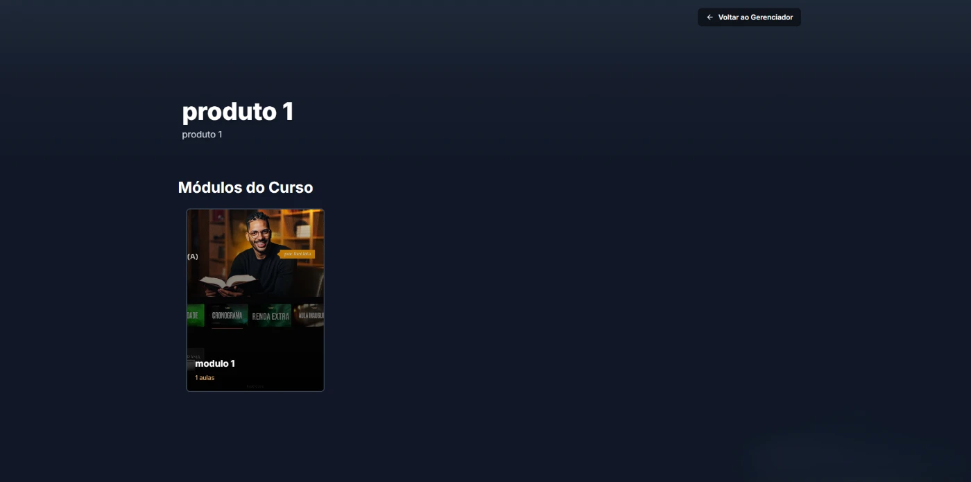 Tudo centralizado em um único painel: criação de produtos, checkout personalizado, pagamentos integrados, entrega automática e gestão de alunos.