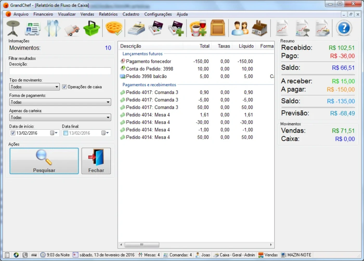 ✔ Fechamento de Caixa