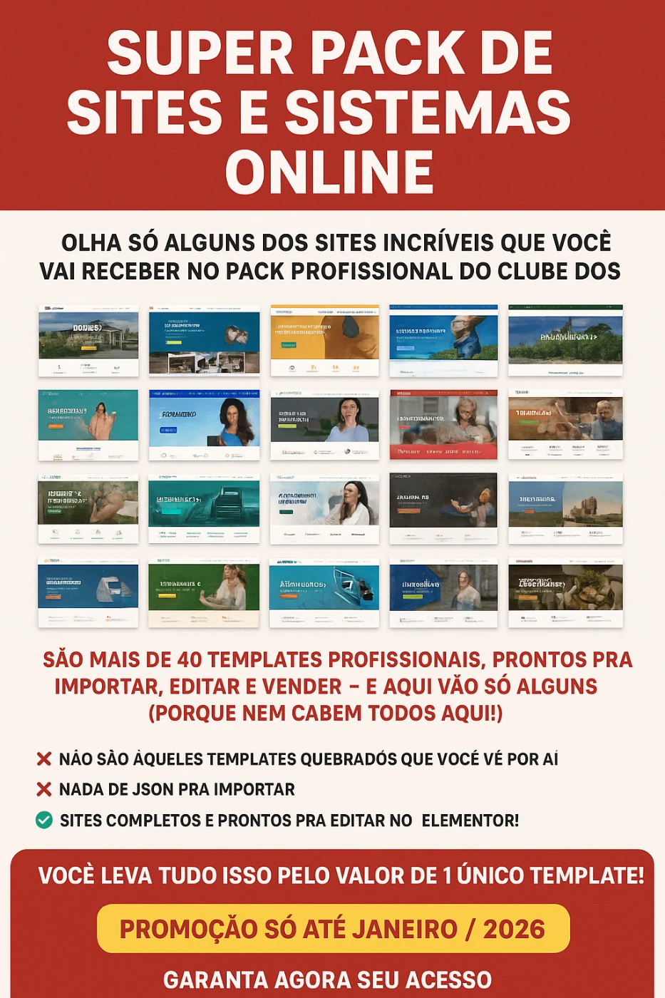 🚨 Olha só ALGUNS dos sites incríveis que você vai receber no Pack Profissional do Clube dos Sites🚨