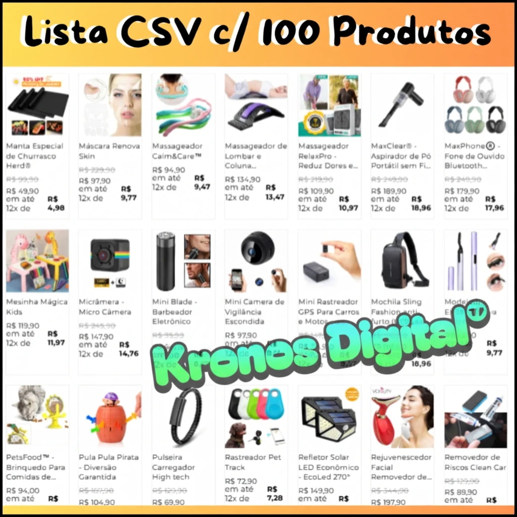 - Lista CSV de 100 Produtos com Copy e descrição