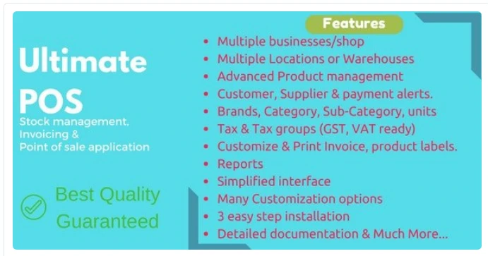 Ultimate POST é um produto seriamente e completamente investido por nossos mais de 10 anos de experiência no negócio. Estamos adicionando e melhorando continuamente por mais de 4 anos, fizemos mais de 200 lançamentos, mais de 1.000 recursos e usados por mais de 4.000 empresas em todo o mundo. Certamente nunca custará $ 19 $ 29 ou $ 39, este produto é para quem é sério e realmente quer expandir seus negócios. Você encontrará uma pechincha ao comprar o UltimatePOS.