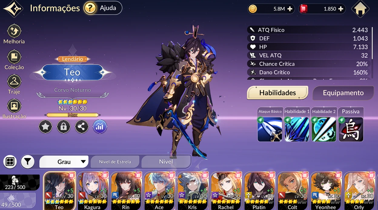 Téo T4 + 4 Slots de equipamentos + habilidades upadas
