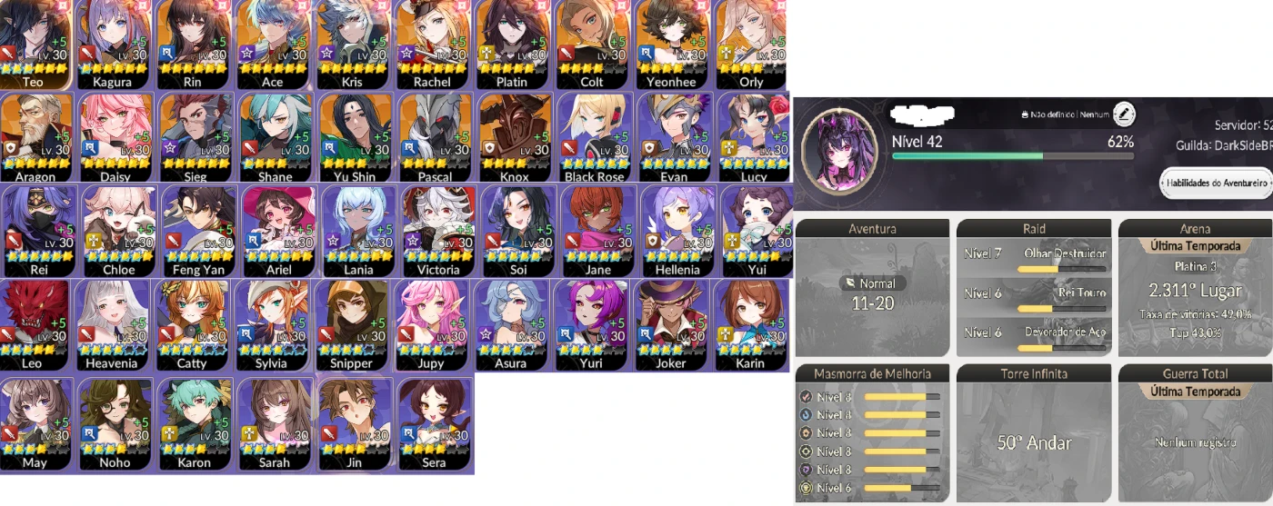 V>Conta Seven Knights: Rebirth Téo T3+4Slots+Kagura+Pascal - Outros