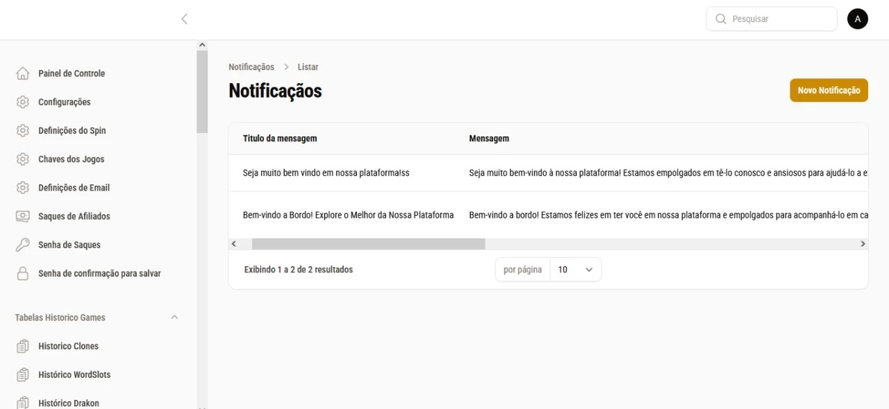 ✅ Total controle do painel administrativo