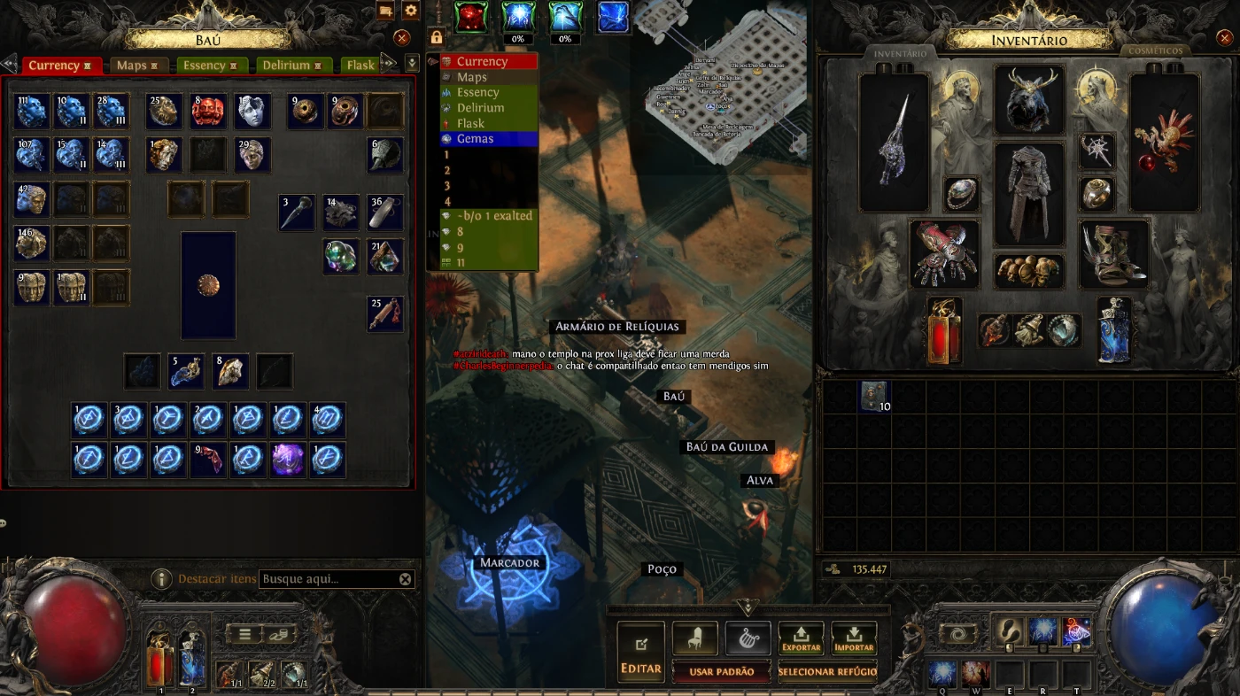 Foram comprados todas abas e +4 premium e 1 quad, e o passe atlas da liga passada do path of exile 1