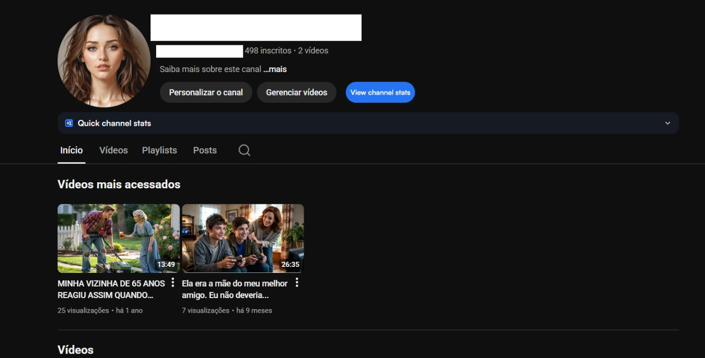 Canal Youtube 498 inscritos (NÃO MONETIZADO) - Redes Sociais