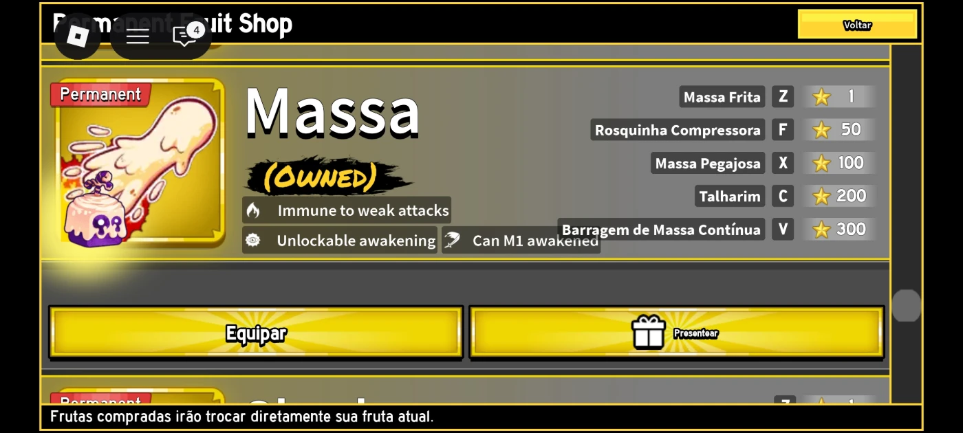 ✅ Todas as frutas são permanentes, ou seja, você pode usar quando quiser, trocar de fruta sem perder e aproveitar todo o potencial do jogo.