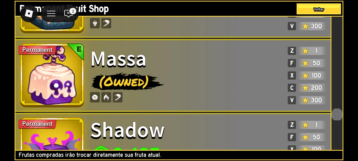 ✅ Todas as frutas são permanentes, ou seja, você pode usar quando quiser, trocar de fruta sem perder e aproveitar todo o potencial do jogo.