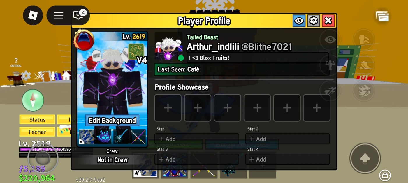 Conta de Roblox focada em blox fruit