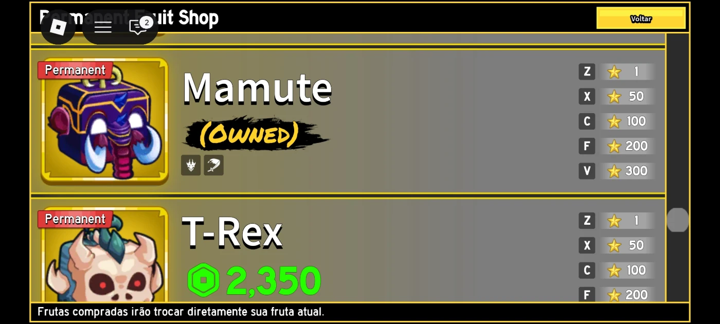 ✅ Todas as frutas são permanentes, ou seja, você pode usar quando quiser, trocar de fruta sem perder e aproveitar todo o potencial do jogo.