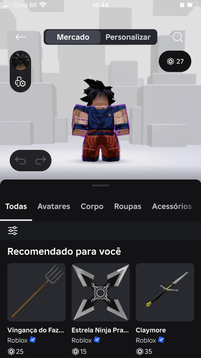 A conta contém a skin do Goku de 550 robux com animação e etc, tmb tem 27 robux.