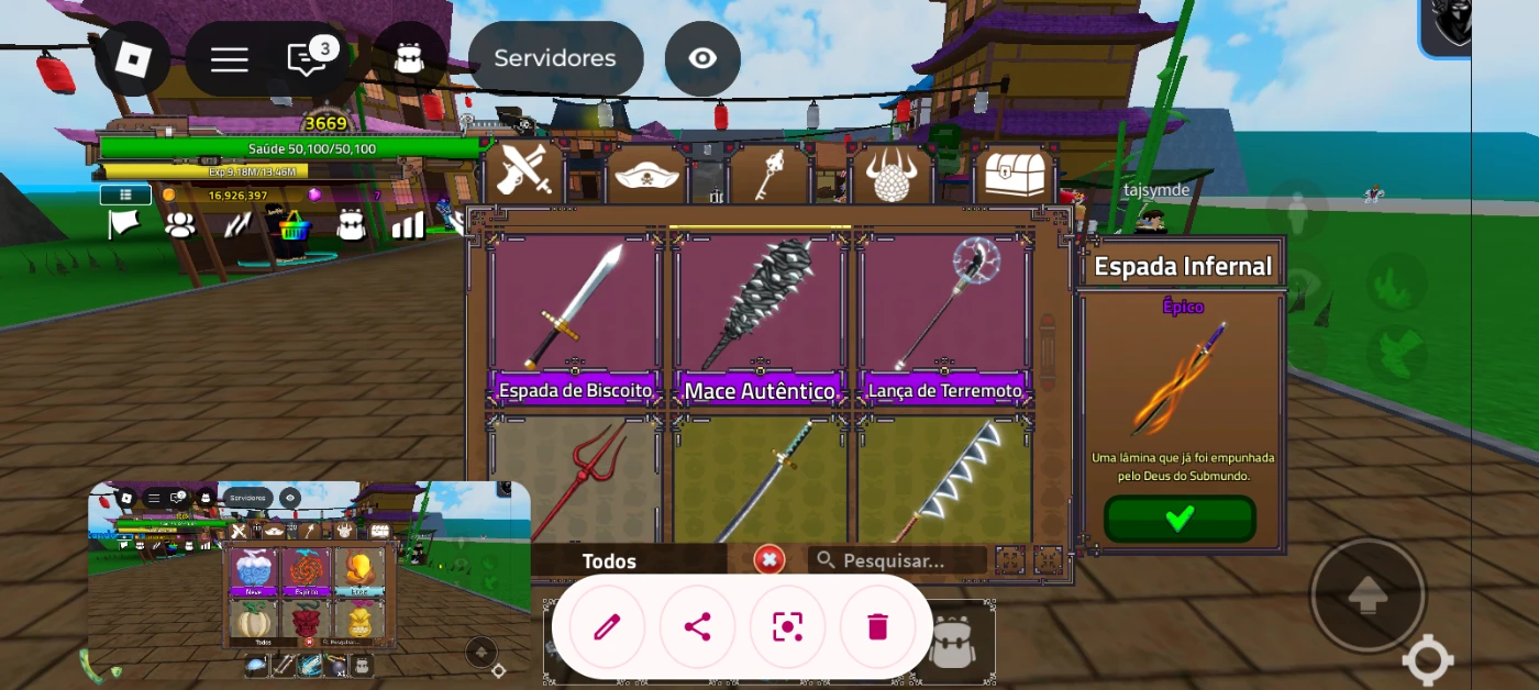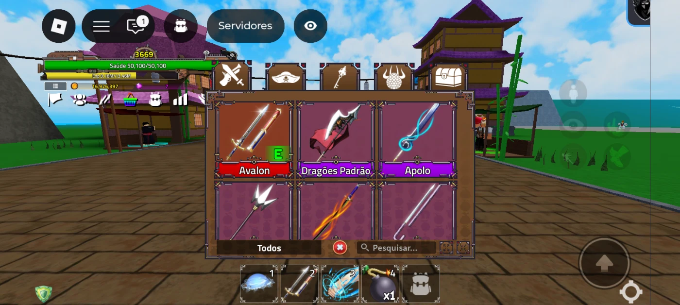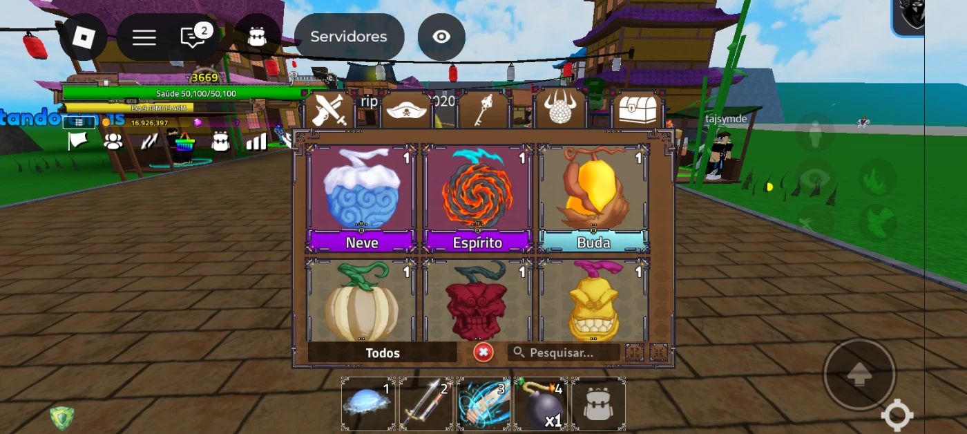 Na conta ela tem 1 espada mítica e 6 espada épica e 3 espada comum e na conta tem 2 fruta épica e 1 acessório épica e 3 raros etc...