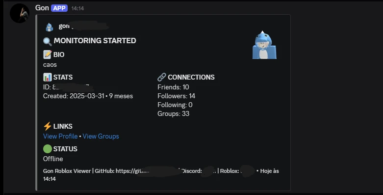 Roblox Viewer, Monitoramento Roblox com Alertas via Webhook