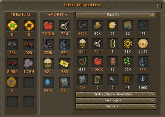 VENDA DE MOEDAS E CONTAS
