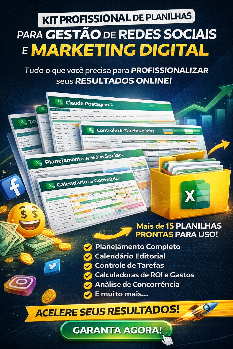 🚀 KIT PROFISSIONAL DE PLANILHAS PARA GESTÃO DE REDES SOCIAIS E MARKETING DIGITAL