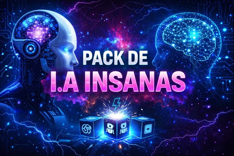 O PACK DE I.A INSANAS é um mega acervo estratégico criado para quem quer dominar o jogo da Inteligência Artificial, automação e produtividade digital — tudo em um só lugar.