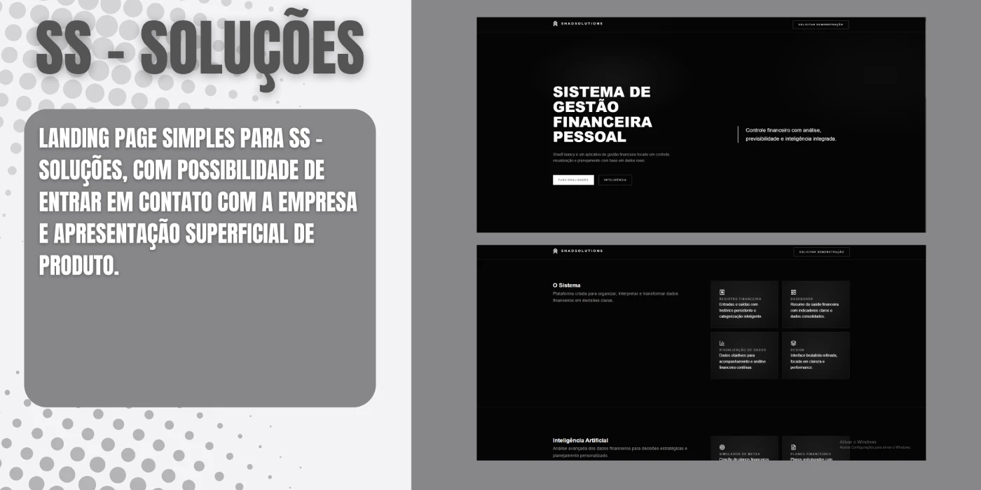 Páginas para apresentação de projetos, produtos ou serviços, com design responsivo e formulário de contato.