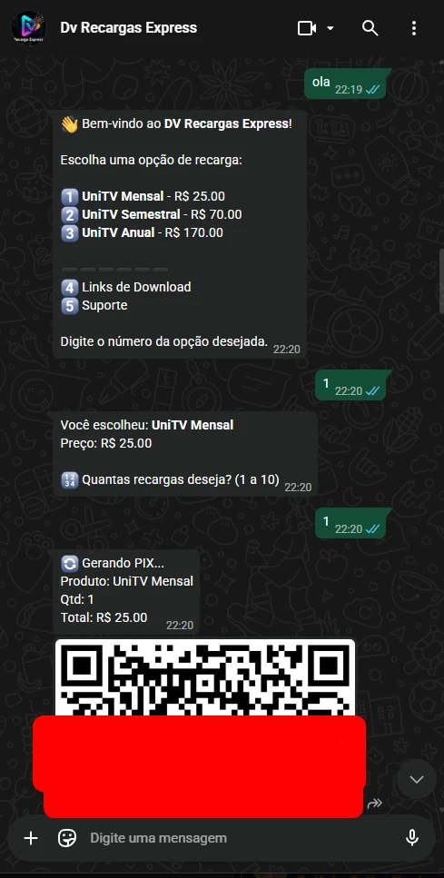 Bot confirma e entrega o código na hora ✅