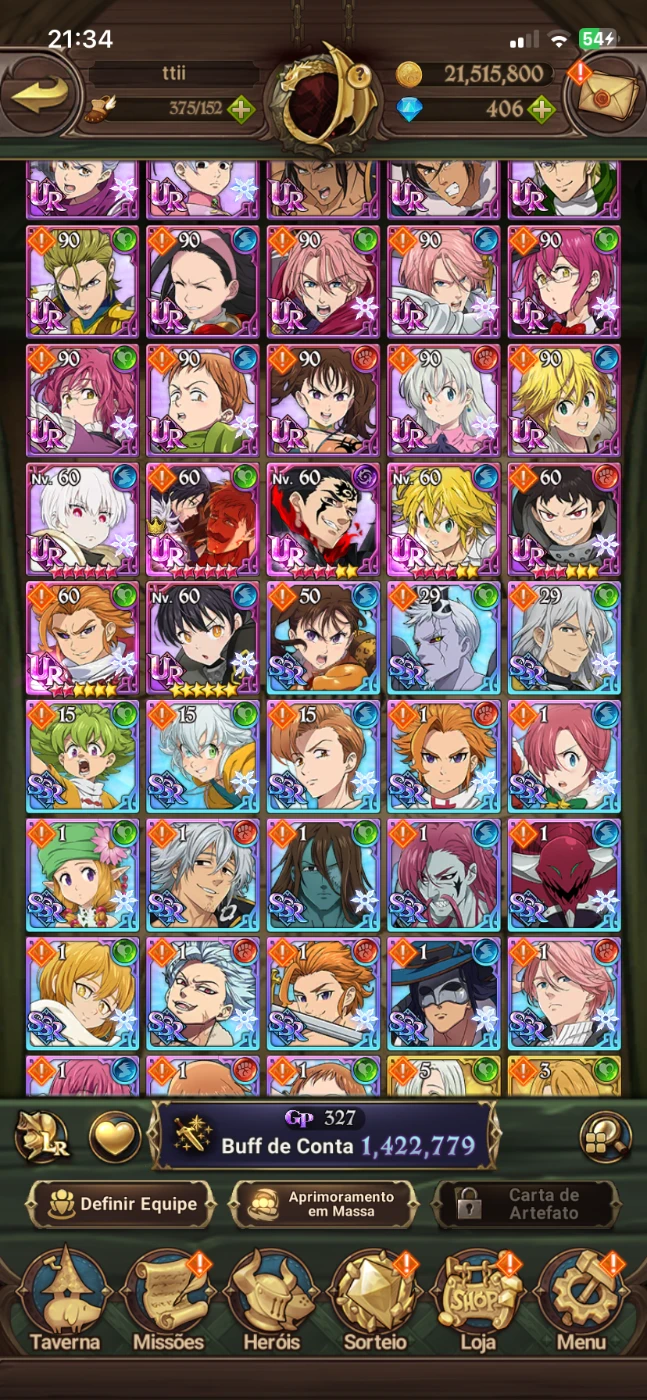 CONTA GLOBAL COM VÁRIOS RECURSOS E DIVERSOS HERÓIS PARA COMEÇAR MUITO BEM NO JOGO.