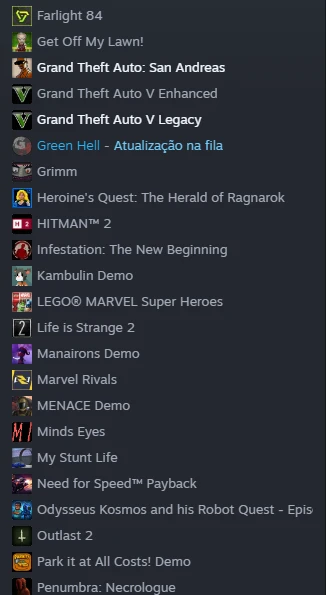 São 115 jogos já na biblioteca, prontos para baixar e jogar! Uma coleção construída ao longo dos anos, com variedade para todos os estilos.