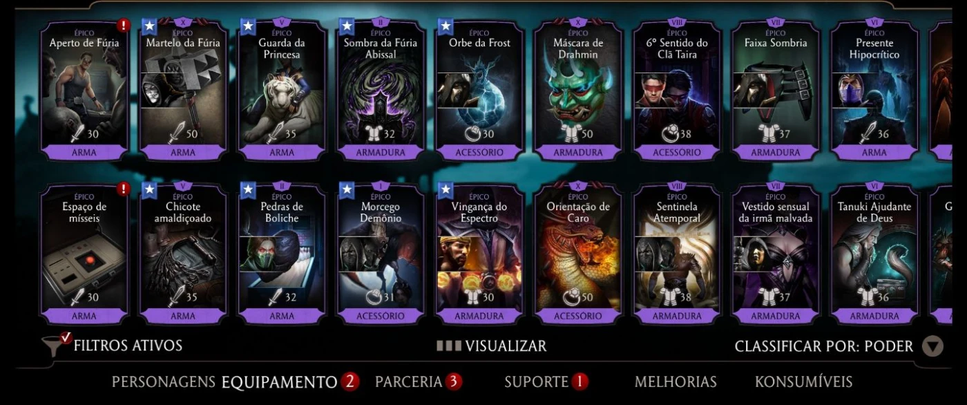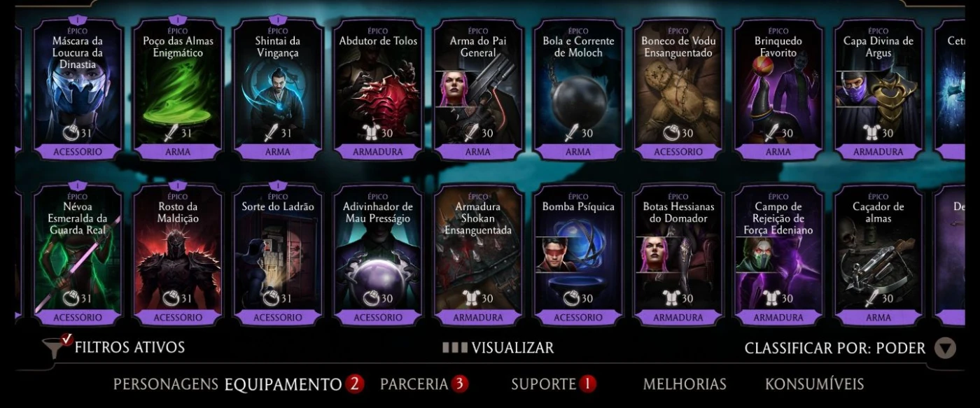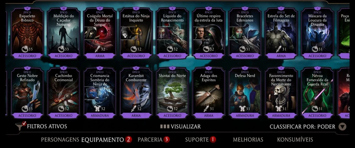 Muitos equipamentos épicos. Tem quase todos os equipamentos no épico.