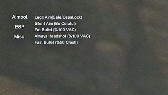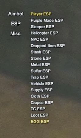 +Player ESP- Box - Name - Health +Aimbot- Bind - Visible check - Fov - Distance - Smooth - Bone +Misc- Draw FOV -NO RECOIL