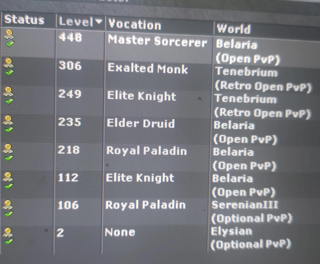 Conta Rubinot Ms Lv 448 C/ Loot + 4 Char Lv 200