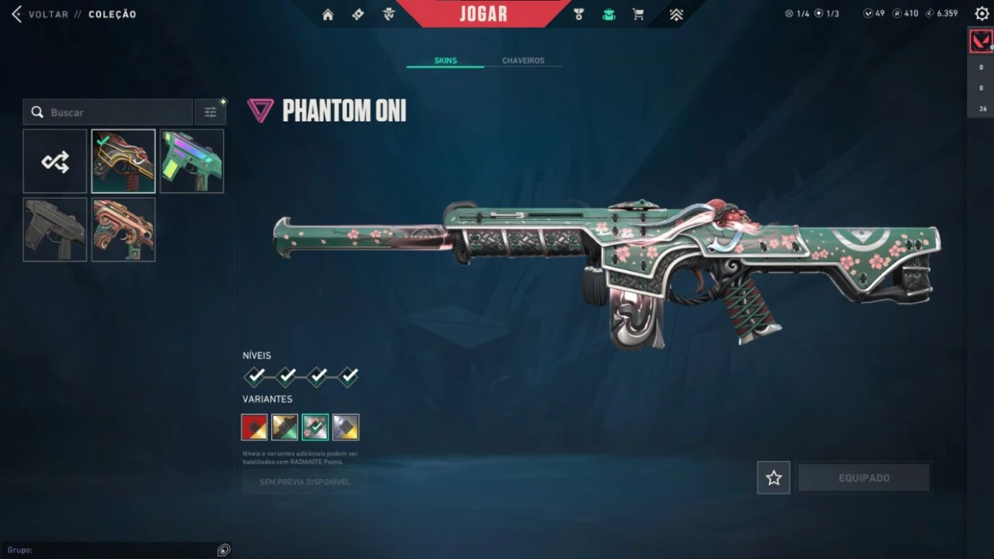 Skins principais: • Vandal Asas Oníricas de Evorí - Vanda Reaver - Vanda PewPew • Phantom Oni (com variantes) • AWP Ion • Lâmina RGX 11z Pro (com variantes) e Leque do boi • Outras skins inclusas (clássicas, bulldog, pistolas e facas adicionais) é possível alterar todos os dados da conta (email, senha ou similares) Status: • Sem ban • Sem restrições • 49 Radianite • 410 VP • Nível da conta: 97