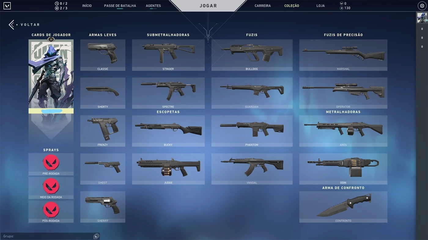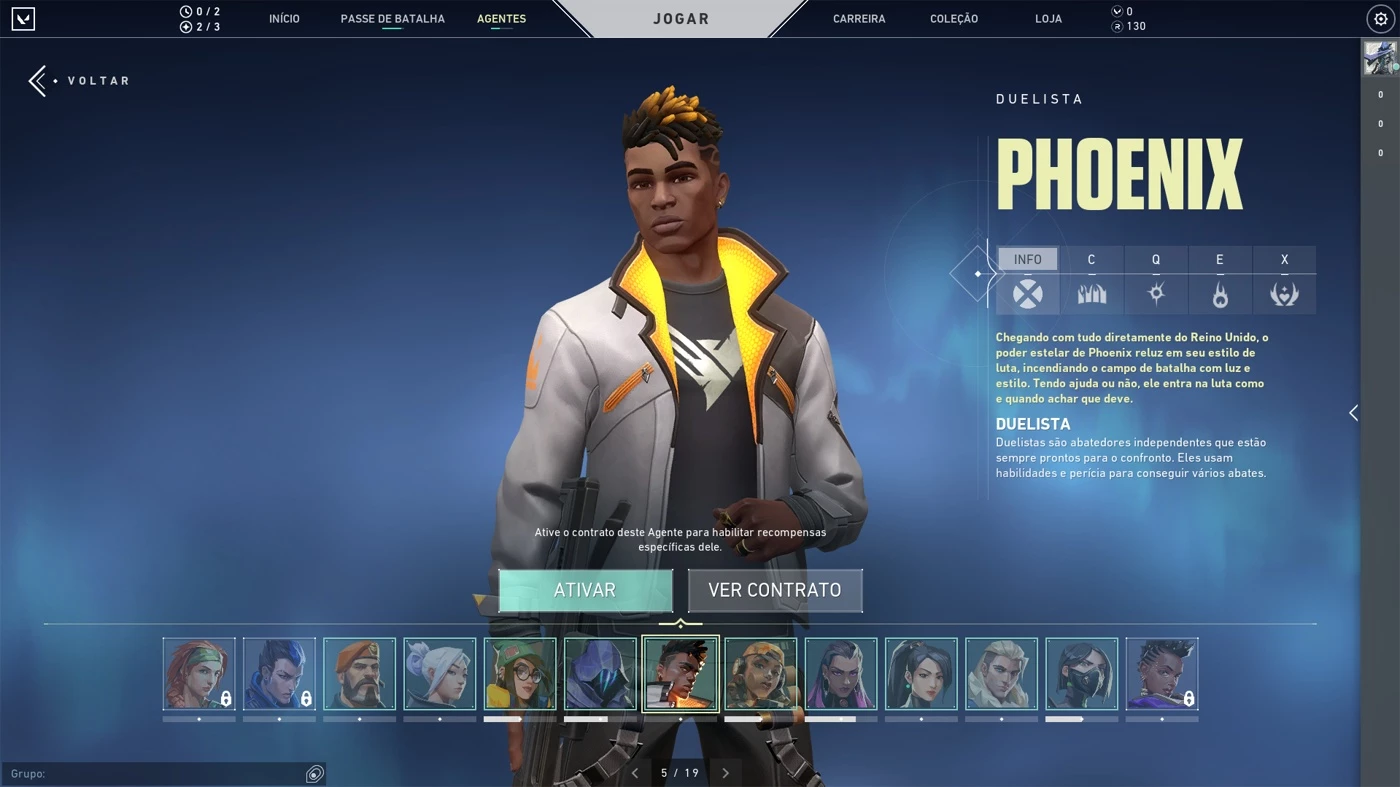 - Default (Phoenix, Jett, Sage, Sova e Brimstone)